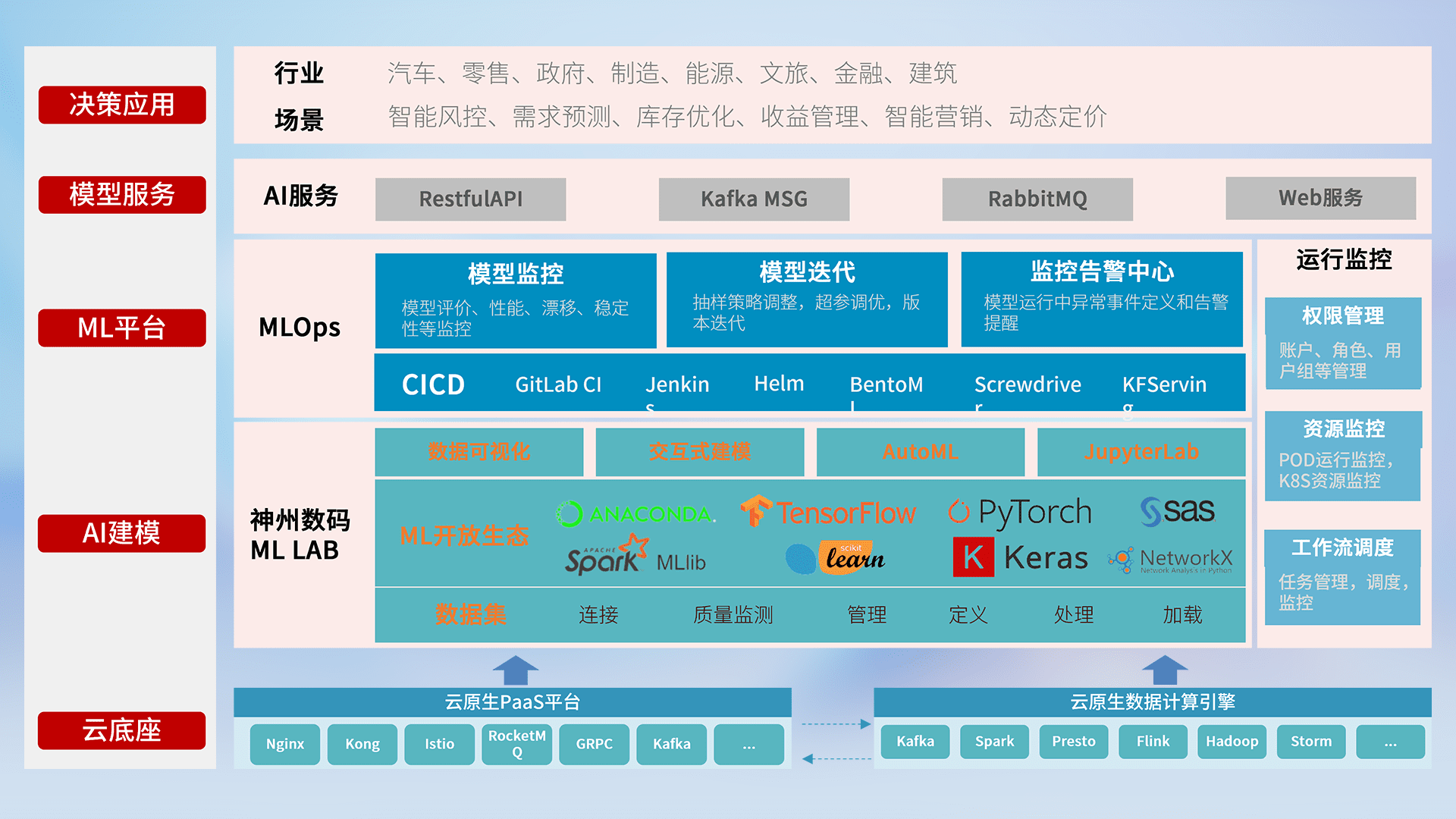 数据+模型双引擎驱动,,,面向智能服务场景,,快速灵活利用AI技术,,支持业务决策,,,,助力企业智能化转型破局。。